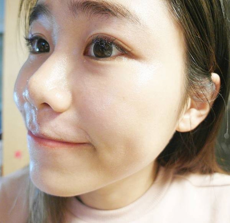 上圖是使用富勒烯雙層精華約10分鐘左右吸收後的狀態~
